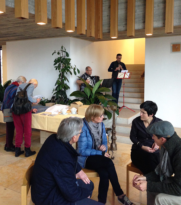 Zahlreiche Gäste lösten am Sonntag, 30. November ein Ticket nach „Menzingen retour“ und feierten mit dem Lassalle-Haus den bevorstehenden Aufbruch. Bereits beim Gottesdienst um 8:30 Uhr war die Kapelle bis auf den letzten Stuhl gefüllt. Das bissig-böse Duo „Knuth und Tucek“ zog die ZuschauerInnen im Forrenmattsaal schon mit dem ersten Lied in ihrem Bann. Spätestens beim Stück über Männer mit Bärten oder dem Lied vom Yoga-Seminar brachten die „Rock-Ladies der Satire“ den Saal zum Toben. „Wie gut, dass ich keinen Bart habe“, meinte nach der Vorstellung Direktor Tobias Karcher erleichtert. In einer kurzen Präsentation zeigte Bildungsleiter Bruno Brantschen den Fahrplan der „Menzingen retour“-Expedition des Lassalle-Hauses auf und lud die Gäste ein, im nächsten Jahr einfach die vier Busstationen bis zum Kloster Menzingen weiter zu fahren und in den neu gestalteten Räumlichkeiten eine Heimat auf Zeit zu finden.